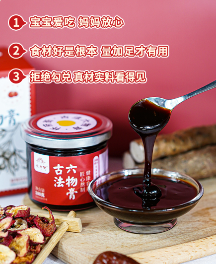 如果你自己、宝宝或家人平时脾胃不好,出现上述积食症状,可以喝点古法六物膏,呵护全家人的脾胃健康。